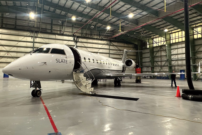 Slate will use the facility to support maintenance and cabin conversions of its 35 CRJ-200 aircraft to VIP charter and shuttle seating configurations, for use in both its private charter and per-seat services within Continental US, Caribbean and Canada. The facility is currently staffed by a team of more than 40 technicians, which will grow to a staff of over 50 full-time employees during the course of 2025.