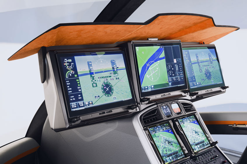 Avionics include a Garmin suite with large G500H TXi displays, touchscreen GTN navigators and a four-axis autopilot with hover assist and limit cueing. Safety features include dual hydraulic flight controls, impact-resistant windshields and LED exterior lighting for enhanced visibility. The aircraft also introduces dual cyclic controls, allowing the pilot to operate from either seat.