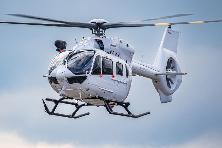 The H145 is powered by two Safran Arriel 2E engines and features the Helionix avionics suite, a Fenestron tail rotor and a spacious cabin. It has the lowest CO₂ emissions in its class and is widely used for HEMS operations, with around 600 H145 family helicopters currently flying such missions worldwide.