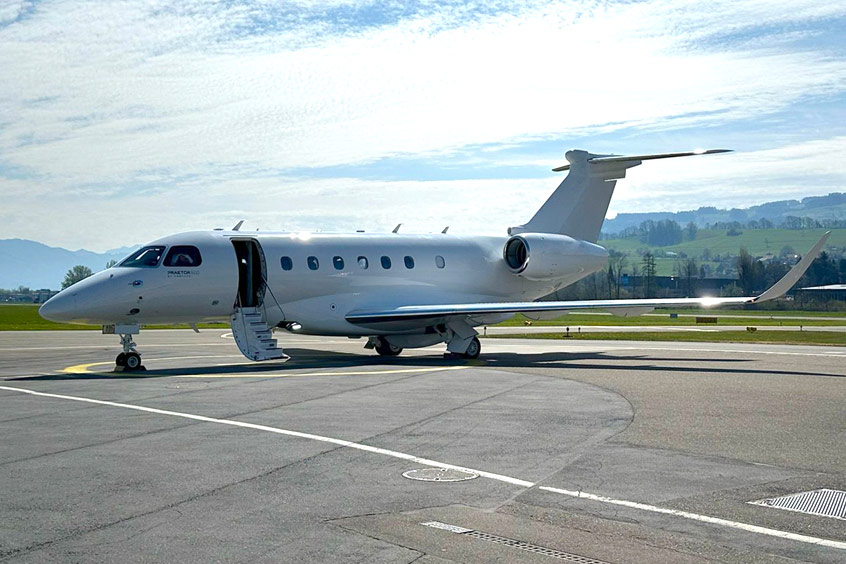 “Featuring a highly functional galley, the cabin is designed for long flights, offering a height of 183 cm and a width of 208 cm. Furthermore, the sofa and the chairs are convertible into comfortable and flat beds. We have also unlimited wi-fi on board,” explains Horvath-Muska. “Furthermore, in August 2025 we expect our two ordered brand-new Phenom 300E to arrive where at least one will enlarge our fleet further to five Phenom 300E and two Praetor 600.”