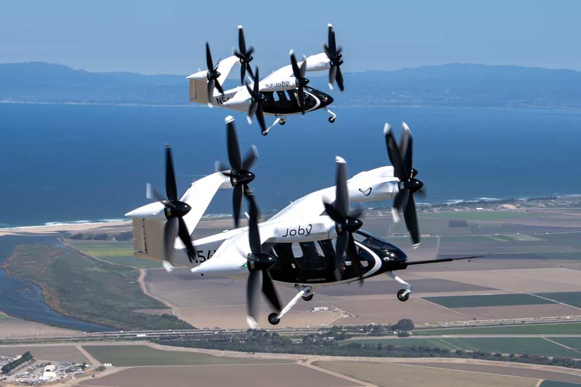 The two-aircraft flight, completed in Marina, California on 9 May, is a demonstration of the maturity of Joby's test programme and comes two weeks after the company announced it had reached another testing landmark, successfully completing flights with a full transition from vertical to cruise flight and back again with a pilot onboard.