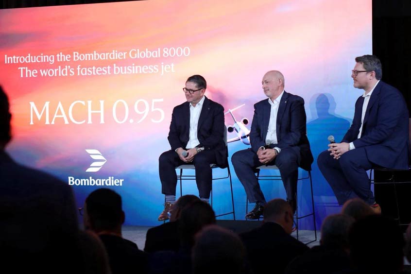 Gulfstream showcased its G400, G600, G700 and G800, and the new G300 mock-up made its first appearance. Bombardier displayed its Global 7500, Global 6500 and Challenger 3500, and announced a new top speed for its ultra long-range Global 8000 of Mach 0.95 along with delivery of the type to Comlux next year.