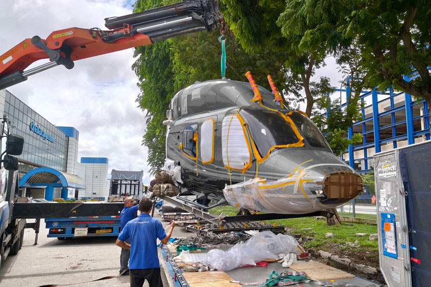 As part of its expanding rotary-wing service offering, B&H Worldwide Singapore coordinated import customs clearance, arranged a suitable air-ride suspension transporter, confirmed consignee site limitations such as maximum vehicle and load height, and ensured the availability of appropriate tie-down and securing expertise to support safe unloading and onward delivery.