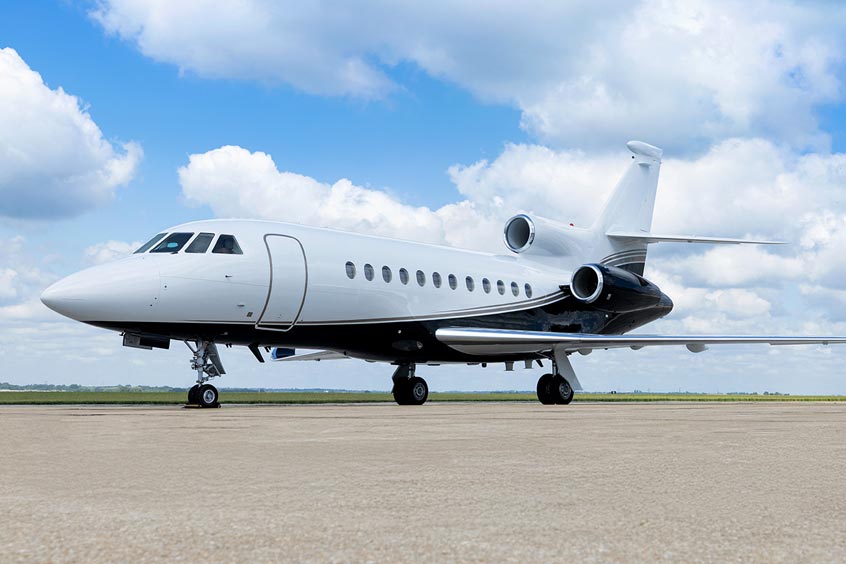 The aircraft's exterior design was based on the owner's new Gulfstream, with the Duncan Aviation paint team carefully adapting the scheme to complement the Falcon's distinctive fuselage lines.