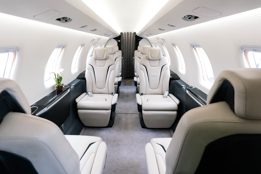 The aircraft is configured for up to eight passengers, offering a cabin designed to combine comfort with practical efficiency. This layout makes the PC-24 particularly well suited to regional and European trips.